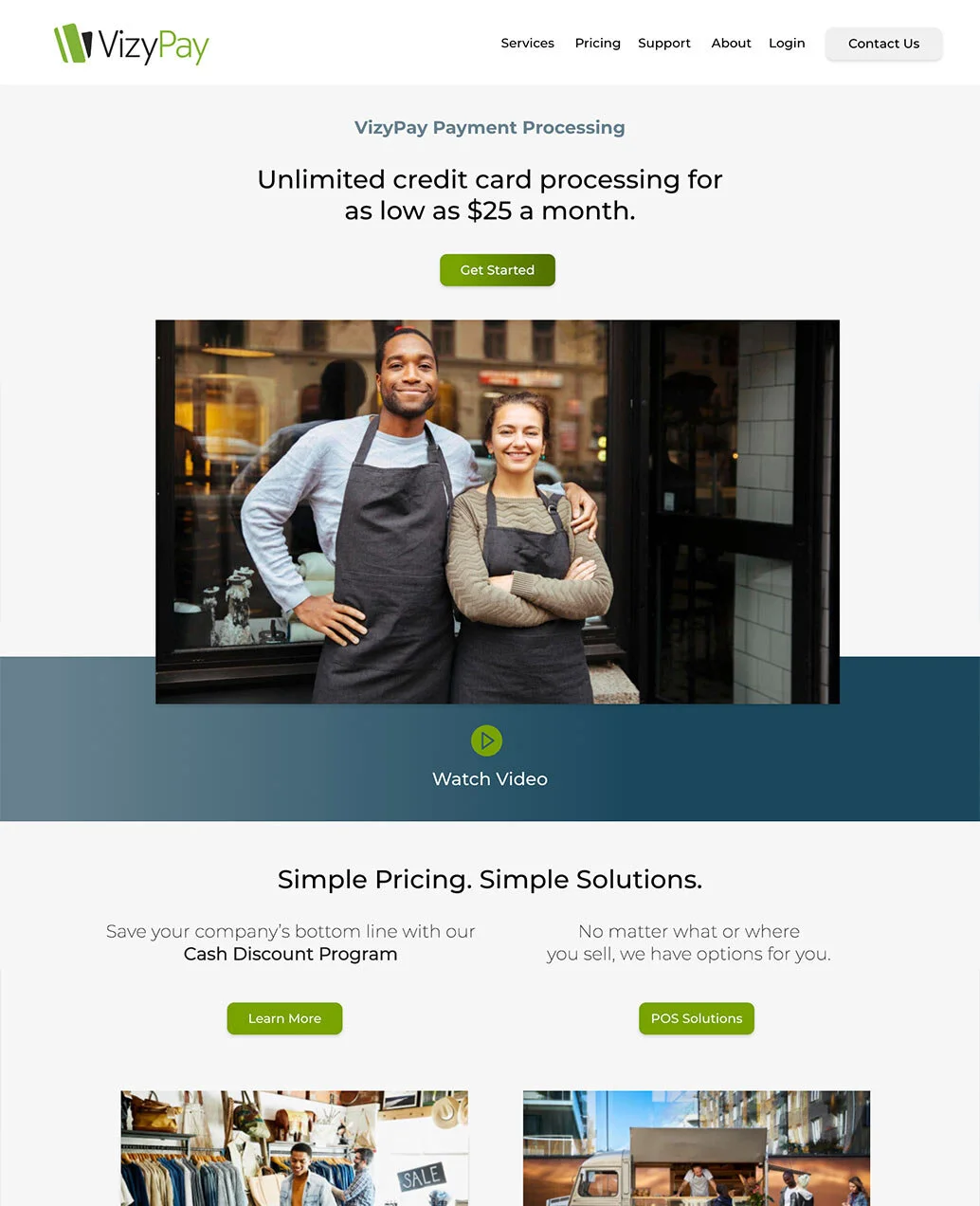VizyPay is a payment processing provider who offers simplified transaction tools for small to medium sized businesses. They tasked us with a series of digital ads that would help increase traffic to their website and better define their current offerings. I developed the ads in collaboration with our internal team and the client, and designed a landing page to capture visitors and direct them to contact VizyPay for more information.